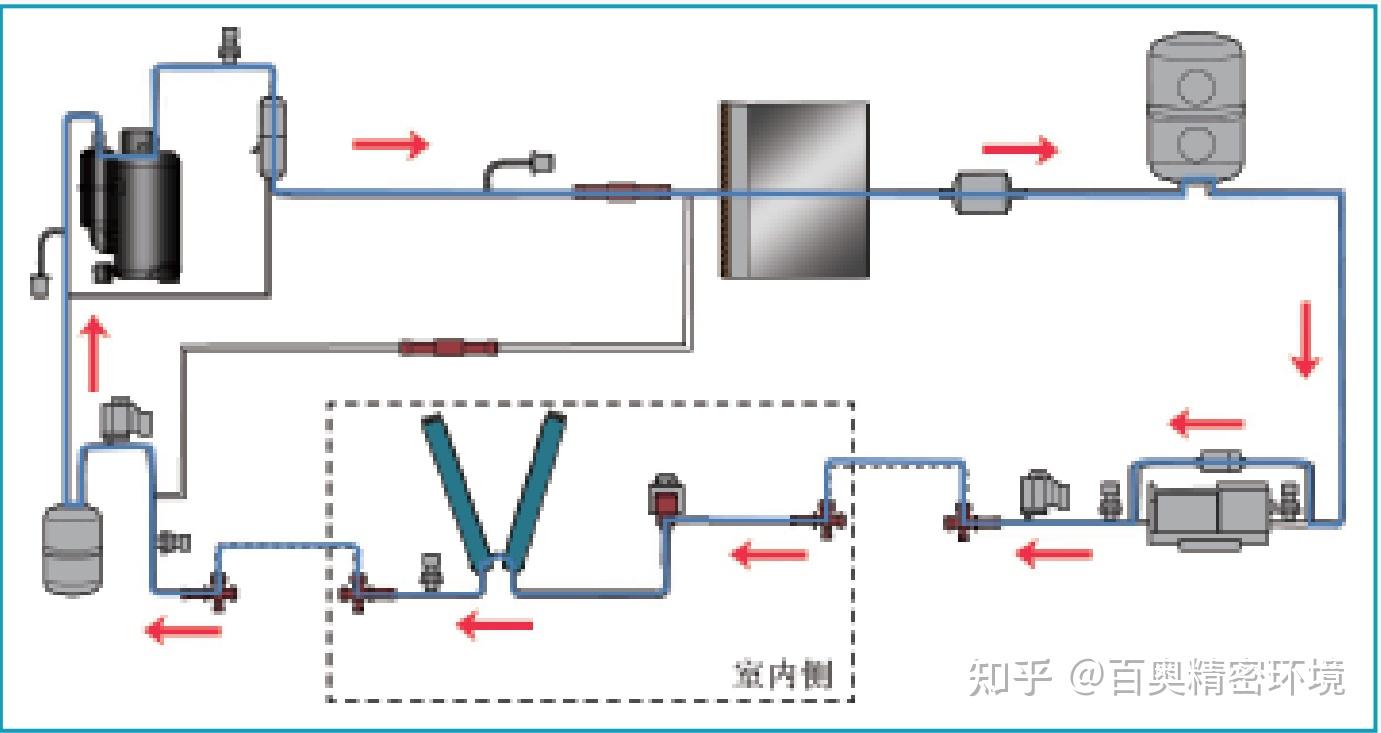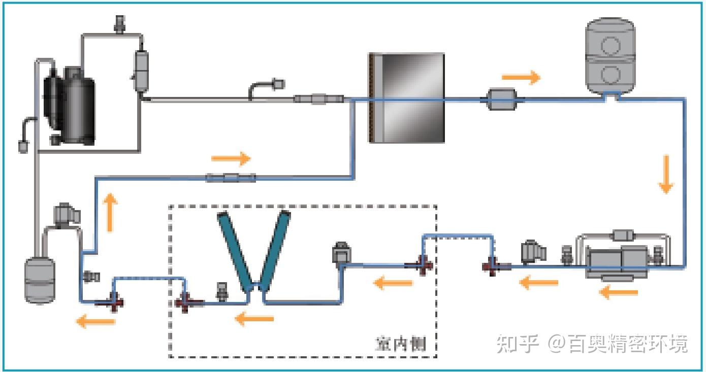 这里要强调一下,“氟泵” 可不是一个孤立的泵,它是一个完整且复杂的循环系统。这个系统包含了数据中心内部的蒸发器、外部的风冷冷凝器、制冷剂气液分离器、油分离器以及制冷剂循环泵。有趣的是,在这个系统里,泵并非是不可或缺的元素哦。